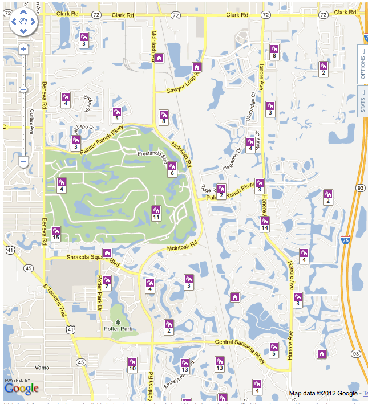 Below is a map of all the Palmer Ranch Homes for Sale. By clicking onto the map you will be able to view the current homes for sale in the entire Palmer Ranch Area.